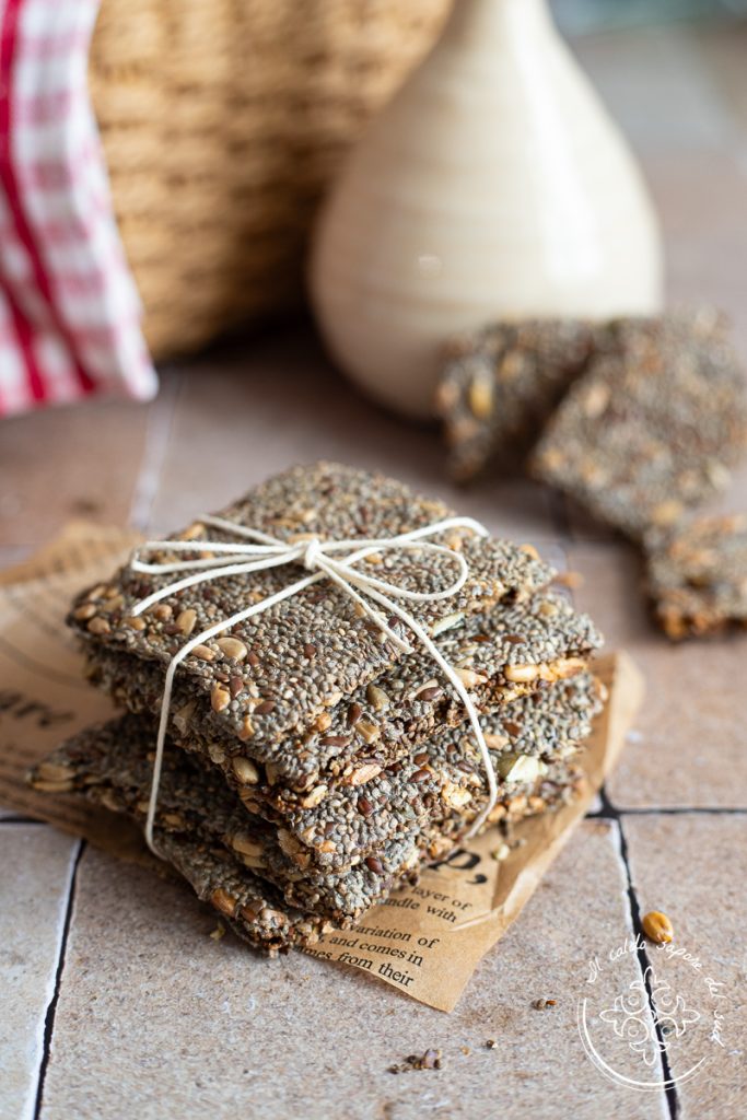 Crackers de semillas mixtas con semillas de chía sin harina. Hace unos días compré una mezcla de semillas, normalmente las uso para enriquecer mi pan casero, pero también me llamó la atención una receta que vi en Instagram, la de los crackers de semillas mixtas con semillas de chía. Así que antes de salir en coche volví al supermercado, cogí las semillas de chía y corrí a casa para preparar esa receta sana y sabrosa que me había despertado curiosidad. Los crackers de semillas mixtas sin harina y con semillas de chía son, de hecho, una receta saludable, nutritiva y saciante, hecha con poquísimos ingredientes, sin harina por tanto sin gluten, vegana y con muy pocas calorías. Un snack realmente fantástico que estoy segura os encantará.