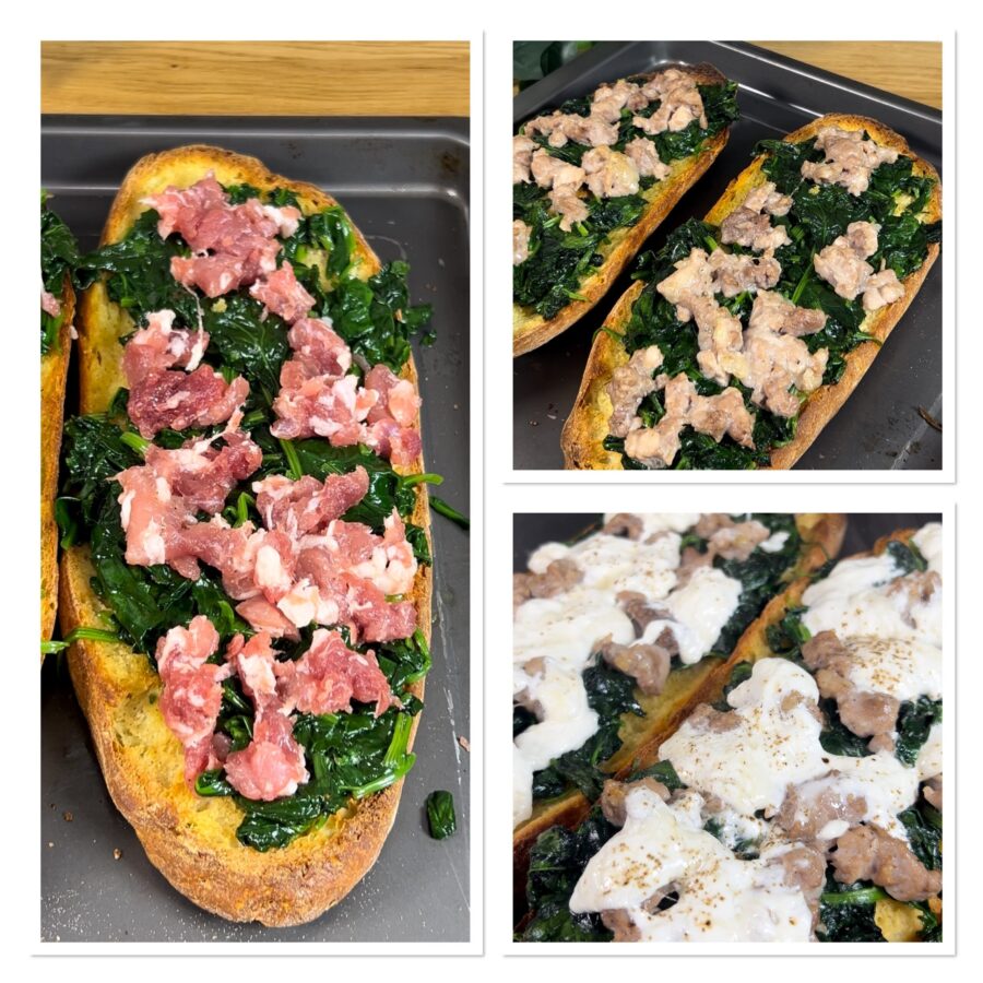 Ingredientes para hacer los Crostoni con espinacas y salchicha