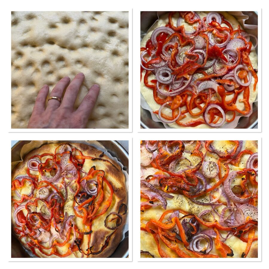 Pasos para hacer la focaccia con pimientos y cebollas