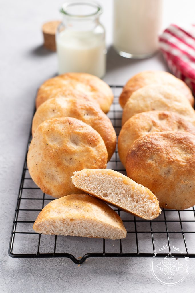 • Las focaccias integrales con leche están listas; están ricas tibias o a temperatura ambiente, se pueden rellenar y también están buenísimas si se comen solas, y se conservan 2 días, como cualquier otro tipo de pan, dentro de una bolsa de plástico. Si queréis, podéis congelarlas en bolsas adecuadas y descongelarlas cuando las necesitéis para consumirlas como prefiráis, con cremas dulces, quesos o embutidos.