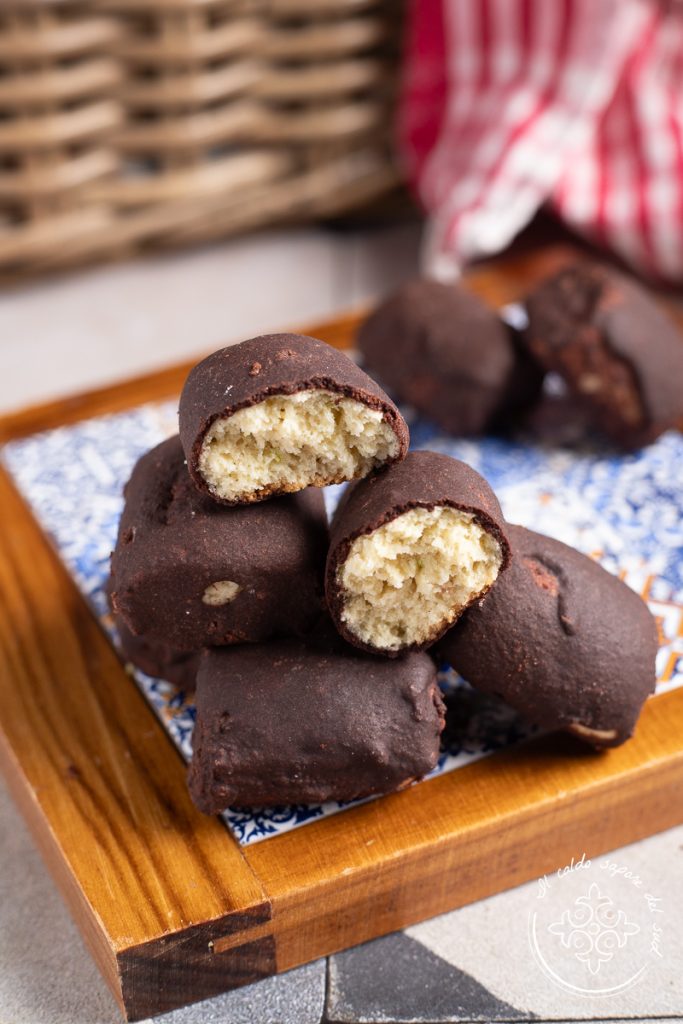 Galletas bersaglieri al cacao, la receta de las galletas catanezas glaseadas con cacao, dulces típicos de la fiesta de los difuntos, como rame di napoli, nzuddi, ossos de muerto, cotognata y mostaza.