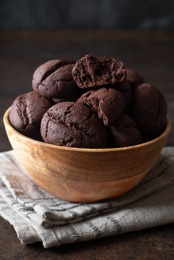 Galletas de cacao y café, la receta de la abuela de las galletas de masa quebrada, ¡pero de chocolate! Las galletas de cacao y café, perfectas solas y deliciosas para mojar en leche, forman parte de nuestra recopilación dedicada a Muchas recetas de galletas riquísimas. Son sabrosas, aromáticas, una tras otra y perfectas para disfrutar en el desayuno, la merienda e incluso en la pausa del café. Ricas en cacao y con un relleno de chocolate negro, estas galletas llevan café espresso y café soluble (descafeinado si es posible) directamente en la masa, lo que les da un aroma especial. Estas galletas suaves, similares a los famosos Crinkle cookies de chocolate, son la idea perfecta para contentar a grandes y pequeños. La receta es sencilla y muy rápida, además estas golosas galletas de cacao se hacen sin molde y para hacerlas ni siquiera hace falta la mesa o el rodillo. Galletas que también podemos hacer con los niños, tienen una característica forma de grano de café que las hace más atractivas, y un delicioso relleno de chocolate negro en trozos. Vamos a la cocina ahora para prepararlas juntos, pero antes de meter las manos en la masa, os sugiero probar también las galletas de chocolate sin mantequilla. Y os recuerdo que si queréis estar al día de las nuevas recetas podéis seguir mi página de Facebook y mi perfil de Instagram.