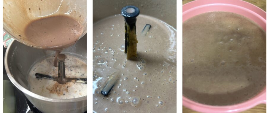 Vierte todo en el vaso de la batidora junto con la pasta de avellanas (en las fotos falta este paso, me olvidé de fotografiarlo) y tritura durante 5 minutos, para enfriarlo rápidamente (puedes usar una batidora de mano).