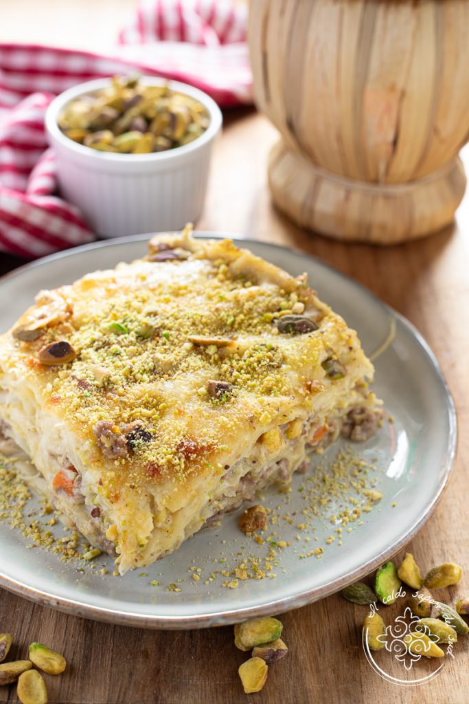 Lasañas de pistacho, la receta siciliana para las lasañas de pistacho y ragú blanco más ricas de siempre, una excelente sugerencia para el menú de fiestas y un plato aún más sabroso que la famosa pasta con pesto de pistachos. Las lasañas con ragú blanco y pistachos son una deliciosa variante de las lasañas clásicas con ragú rojo, una receta original y sabrosa para crear unas lasañas al horno alternativas y con encanto que sorprendan a todos.