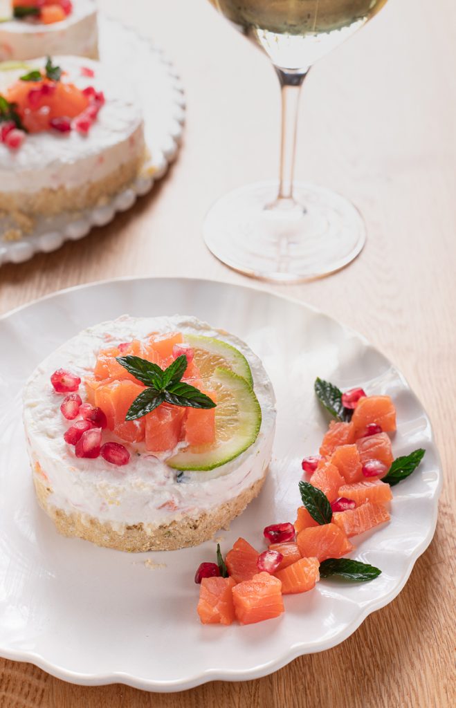 Mini cheesecake de salmón ahumado, aromatizadas con limón, sin gelatina. El aperitivo perfecto para sorprender en Navidad, Nochevieja y en todas las festividades, ¡pero también para cualquier ocasión! Si tu obsesión es encontrar el entrante navideño que deje boquiabiertos, refinado, elegante y a la vez fácil de preparar, estas mini cheesecakes saladas son ideales para ti. Pequeñas tartitas saladas de salmón que se inspiran en la tradicional cheesecake dulce, pero aún más espectaculares y sabrosas. En casa todos se vuelven locos por las recetas rápidas con salmón y esta es una de esas que les vuelve literalmente locos. A mis hijos les encanta robarme el relleno mientras lleno los moldes: lo untan en el pan y se lo comen a cucharadas, así que a menudo tengo que preparar un poco más para reponer lo que han tomado!