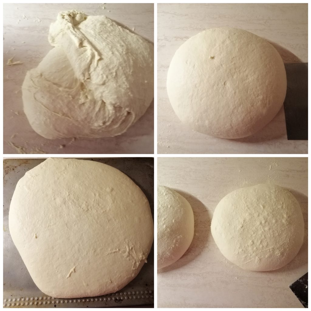Tras ese tiempo, recoge la masa que se habrá extendido y aplanado en la bandeja (es normal), divídela en dos partes y forma dos bolas.