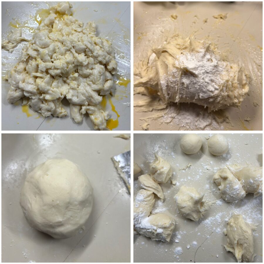 En este punto se forman pequeñas bolitas, que se colocan en la bandeja y se hornean. Durante la cocción los panecillos se hinchan y forman una corteza dorada mientras que el interior se mantiene esponjoso, ligeramente elástico y lleno de sabor gracias al queso. Si te gustan las preparaciones saladas con queso, en mi blog también encontrarás la tradicional pizza de Pascua de queso, una receta muy apreciada durante las festividades pascuales.