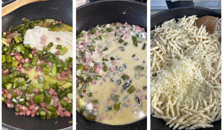 Preparación de la pasta con espárragos y panceta