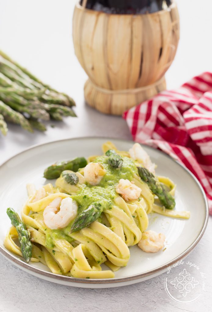 La pasta con espárragos y gambas es un plato que debe prepararse y disfrutarse al momento, cuando todavía está cremoso y perfumado.