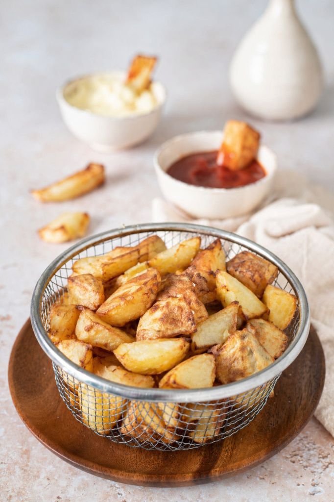 Patatas crujientes en freidora de aire con patatas frescas (no congeladas)