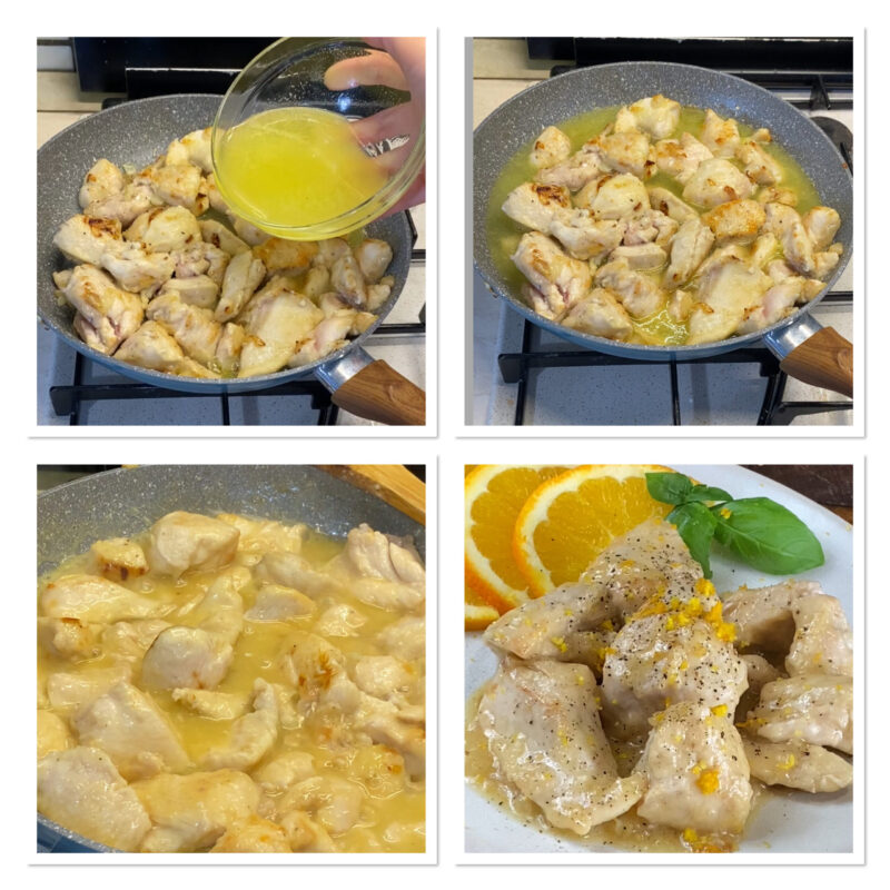 Pechuga de pollo con cítricos: naranja y limón o pechuga de pollo con naranja y limón en la sartén, un segundo plato rápido y sabroso para un almuerzo o una cena informal en familia o con amigos.