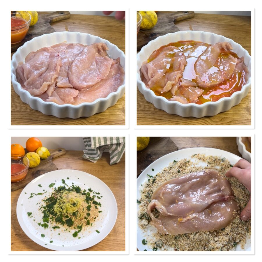 Pasos para hacer la Pechuga de pollo empanada con cítricos
