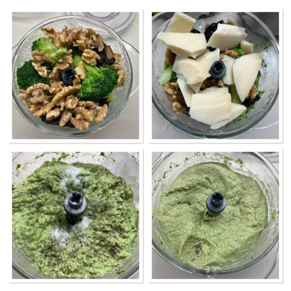 El pesto de brócoli y nueces está listo para servir; la cantidad que sobre se debe conservar en la nevera un máximo de 3 días, cerrada en un recipiente hermético, o se podrá porcionar y congelar.