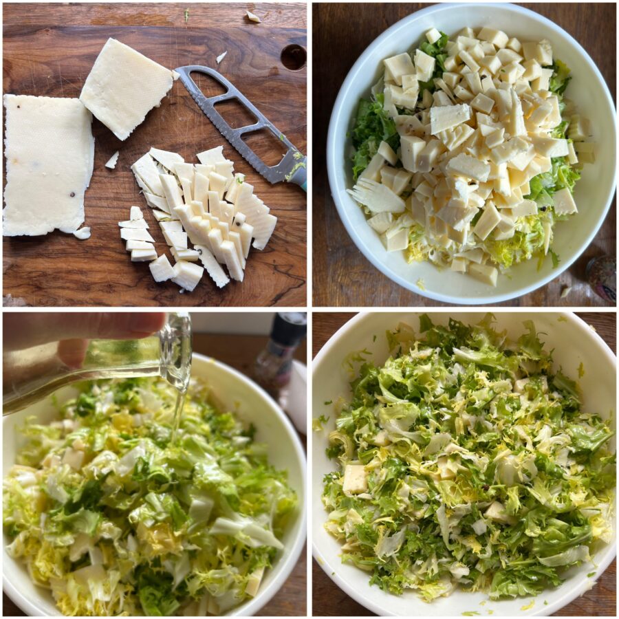 Para el relleno de los pitoni messinesi, limpia la escarola rizada eliminando las hojas exteriores más duras, lávala bien y escúrrela. Córtala finamente y pásala a un bol amplio.