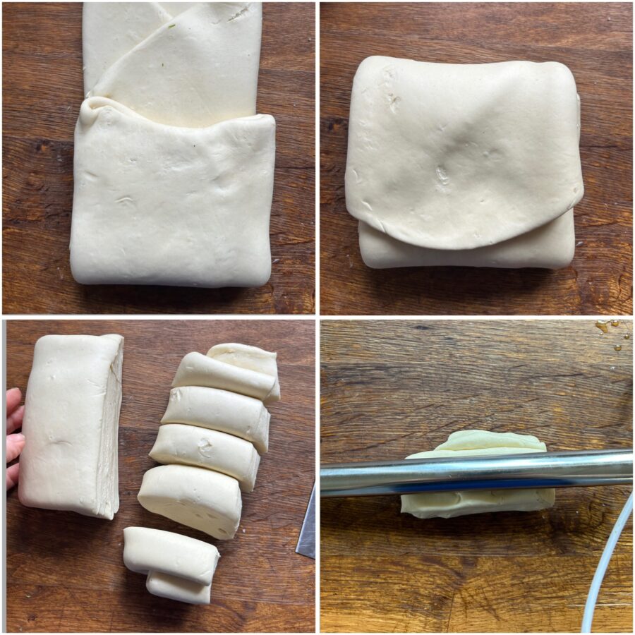 Una vez hechos los pliegues y conseguido ese bloque, sin deshacerlo córtalo en porciones, obteniendo 10-12 piezas.