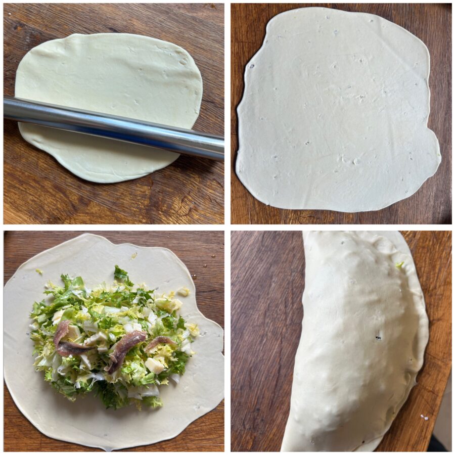 El relleno de escarola (endivia rizada), ingrediente típico de muchas preparaciones regionales, aporta a los pitoni messinesi un sabor ligeramente amargo que se combina perfectamente con la salinidad de las anchoas y la delicadeza de la tuma. Si os gusta esta verdura, podéis descubrir muchas otras ideas con escarola, como la Escarola rellena a la napolitana o la pizza de escarola.