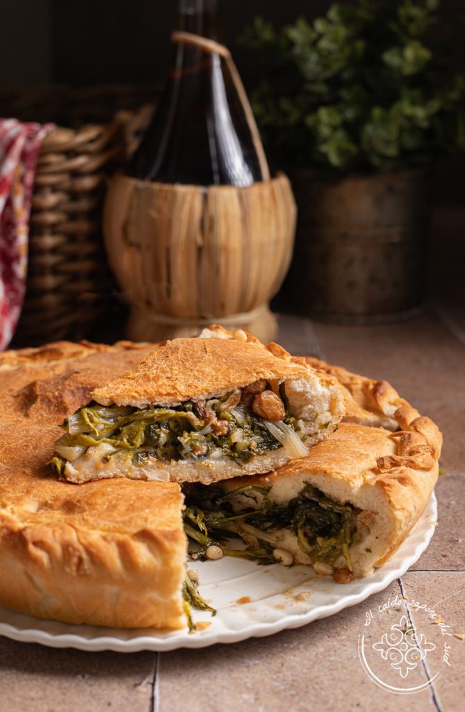 Es hermana de la escarola rellena, compañera de horno del casatiello y de la pastiera, comparte el alma popular de las sfogliatelle y la profunda sencillez de la pasta y patatas hecha como antes.