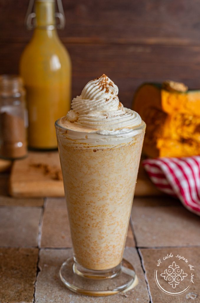 Pumpink spice latte la receta que calienta el otoño y que tiene el sabor de la tarta de calabaza americana. Y aquí estamos por fin, ya hemos hecho el pampink pie spice, también hemos hecho la Pumpink spice souce (syrup) y por fin llegamos: hoy preparamos el pumpink spice latte, esa bebida de café aromática y deliciosa hecha famosa por Starbucks. Si con las primeras bajas temperaturas las recetas otoñales se convierten en vuestra pasión y no podéis decir que no a una receta con calabaza dulce y aromática, el pumpink spice latte ¡es para vosotros! Jerseys de cuello redondo, colores cálidos, especias embriagadoras y tazas humeantes son la mezcla perfecta de la que no se puede prescindir cuando los días empiezan a acortarse y el frío domina. Y es precisamente en esos momentos, que al igual que haría una chocolate caliente, el pumpink spice latte calienta el corazón y el estómago y nos regala emociones únicas. Pero ¿cómo nace el Pumpink spice latte? Esta bebida original nació en 2003 en los laboratorios de Starbucks, donde el Pumpkin Spice Latte combina café espresso, leche caliente y el jarabe de calabaza y especias que hicimos hace unos días. La mezcla de especias utilizada recuerda al sabor de la Pumpkin pie, la tarta de calabaza americana, dulce tradicional del Día de Acción de Gracias, mientras que encima la Crema chantilly (nata montada) y una ligera espolvoreada de especias completan todo. Un pequeño pero fundamental detalle: en la primera versión el pumpink spice latte (PSL) no llevaba calabaza, ingrediente añadido solo en 2015 para responder a las peticiones de los consumidores. Actualmente el PSL es el producto estacional más comprado en la cadena americana y en EE. UU.; su vuelta al menú indica que el otoño ha comenzado oficialmente. Vamos a la cocina; antes, os recuerdo que si queréis estar al día con todas mis recetas podéis seguir mi página de Facebook y mi perfil de Instagram.