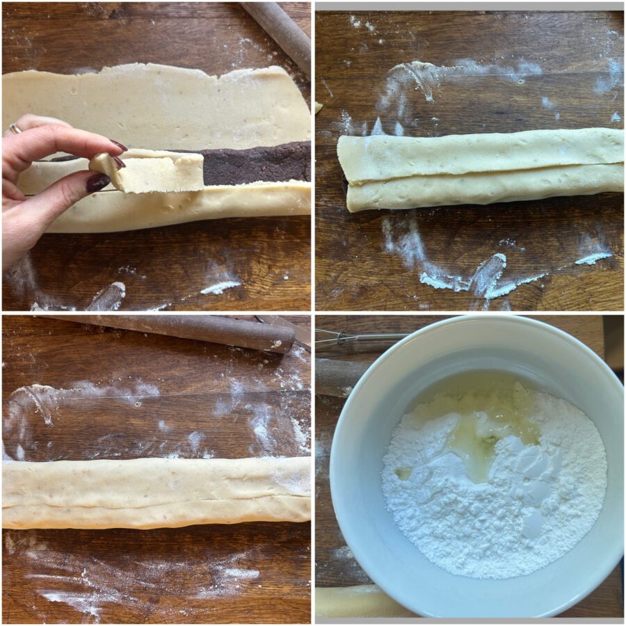 Hasta formar un bloque homogéneo. Alargarlo en forma de cilindro y aplástalo un poco para dejarlo más plano; envuélvelo en film y refrigera 20 minutos.