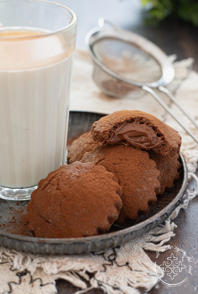 Receta de galletas rellenas de Nutella fáciles y rápidas, otra delicia que se suma a nuestra colección de recetas de galletas riquísimas. A mis hijos les encanta la crema para untar de avellanas y las galletas de chocolate, por eso nunca pierdo la ocasión de preparar algo sabroso para el desayuno en el que sean los protagonistas. Tras el éxito de los fagottini alla Nutella, de los pancakes rellenos de Nutella, de la receta de nutellotti y de mi danubio dulce sin huevo relleno de Nutella, me pareció imprescindible incluir esta nueva aportación en mi larguísima lista de galletas. Estos deliciosos y crujientes bocaditos con corazón tierno han tenido un enorme éxito en casa, también gracias a mi receta personal de la masa quebrada de cacao, que aportó a las galletas un toque irresistible. Vamos a la cocina, os cuento cómo hacer las galletas rellenas de Nutella fáciles y rápidas y, antes, os recuerdo que si queréis estar al día de todas mis recetas podéis seguir mi página de Facebook (aquí) y mi perfil de Instagram (aquí).