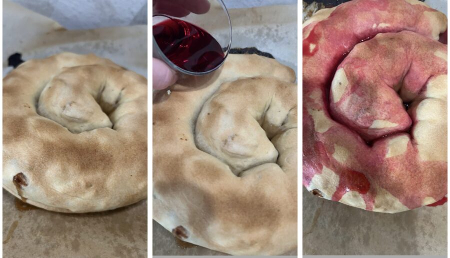 • Una vez cocida y dorada, sacad la rocciata del horno, verted el alchermes y dejadla enfriar completamente.