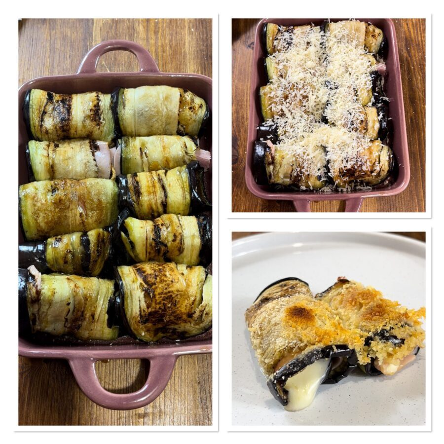 Rollitos de berenjena a la plancha gratinados al horno con jamón y queso, una receta con berenjenas, fácil, rápida y deliciosa, perfecta cuando estas hortalizas están de temporada, tan buena como las berenjenas sabrosas al horno o los rollitos de berenjena a la mediterránea o, también, mi famosa Ensalada de berenjenas a la plancha.