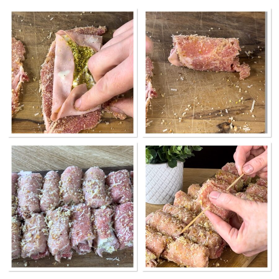 Haz lo mismo con todas las lonchas de lomo y sujétalas con un palillo en grupos de 4.