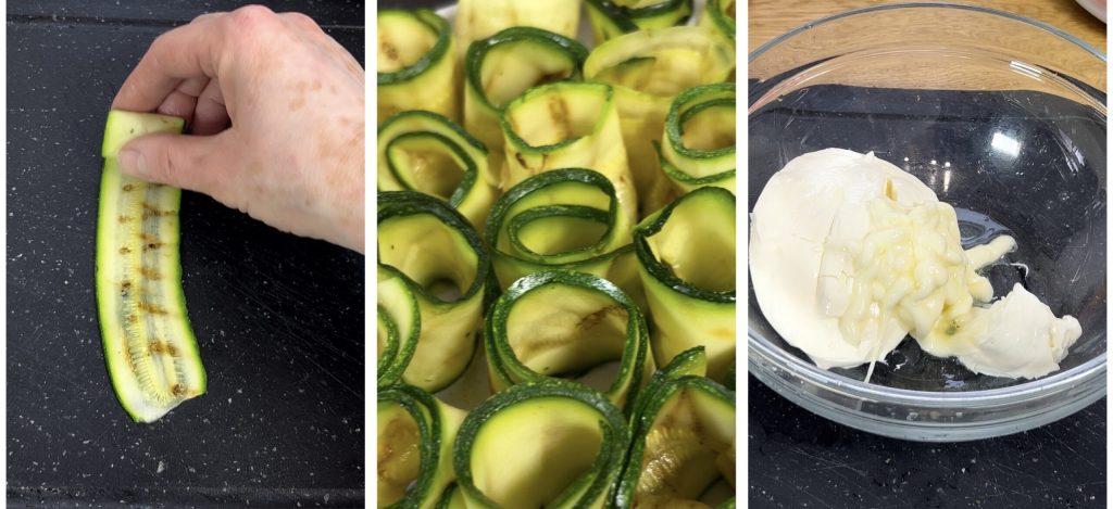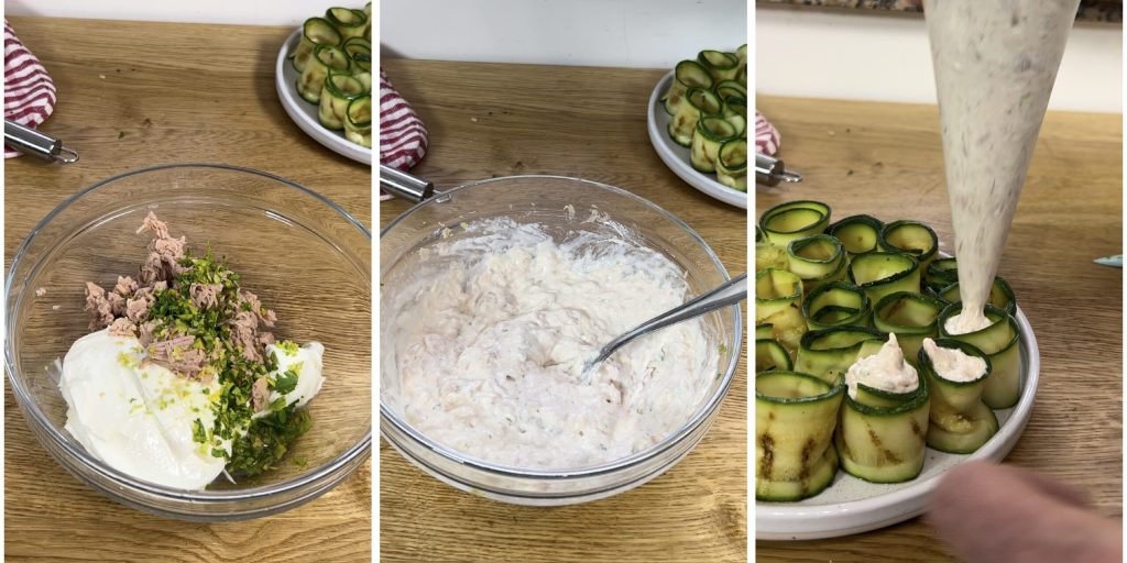 Rollitos fríos de calabacín a la plancha con atún