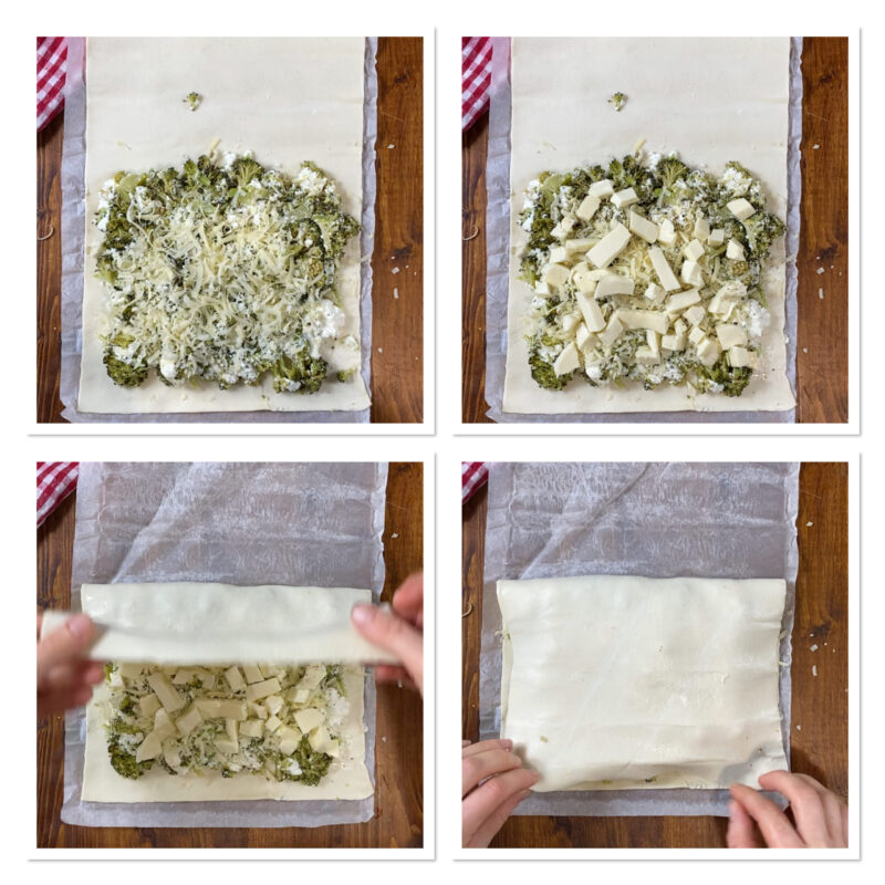 Preparación del rústico de hojaldre con brócoli y ricotta