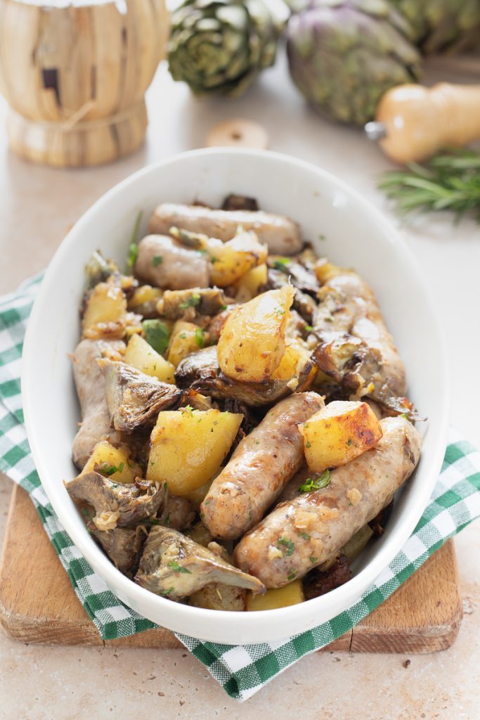 Salchicha con alcachofas y patatas