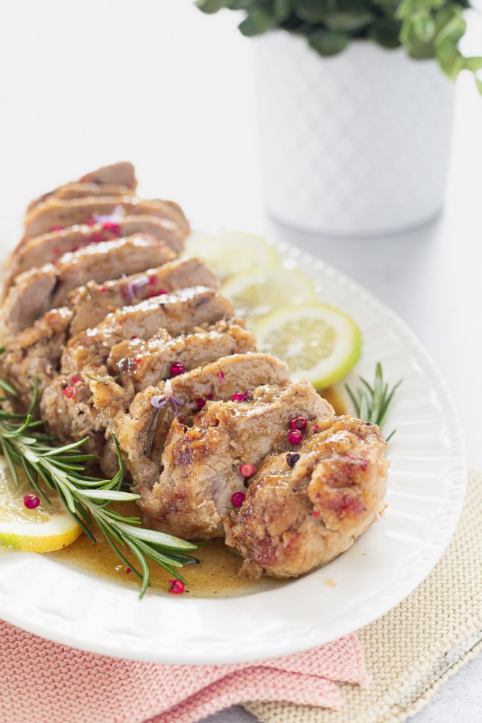 Hoy prepararemos juntos el solomillo de cerdo al limón y miel con mostaza y pimienta rosa y veréis que esta receta simple y rápida para un asado sabroso, os permitirá preparar un segundo de carne suculento y delicioso, que conquistará a todos al primer bocado. El fondo de cocción al limón, mostaza y miel envolverá la carne glaseándola y dejándola especialmente sabrosa y deliciosa, incluso cociéndola en sartén. ¿Listos para descubrir la receta? Corramos a la cocina, pero antes de ponernos al fuego os recuerdo que si queréis estar al día con las nuevas recetas podéis seguir mi página Facebook y mi perfil Instagram y que aquí encontraréis 10 segundos platos navideños que seguro os van a gustar. Si además os gustan los segundos de carne aún más refinados, aquí tenéis la receta del Roast beef y la del Solomillo a la Wellington.