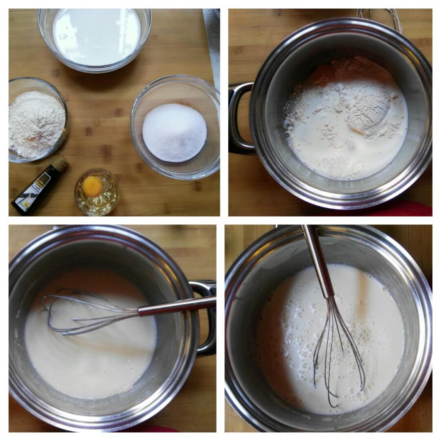 Dejad espesar al fuego, removiendo continuamente con las varillas; apagad el fuego y, fuera del calor, añadid la ralladura de un limón. Pasad la crema a un bol de cristal y dejadla enfriar, cubierta con film transparente.