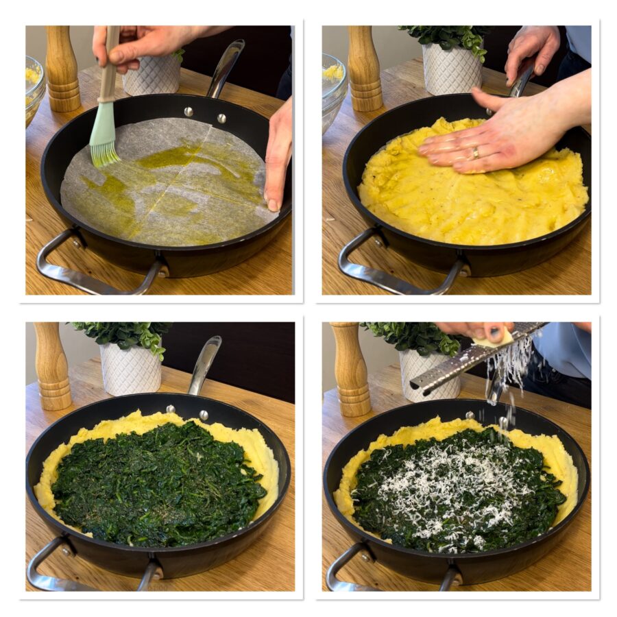 Pasos para hacer la Tarta de patata en sartén con espinacas y mozzarella