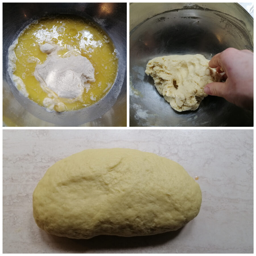 Empezad preparando la pasta matta: reunid todos los ingredientes en un bol y trabajadlos de forma tosca; después pasad todo a la superficie de trabajo y amasad hasta obtener una masa homogénea y elástica.