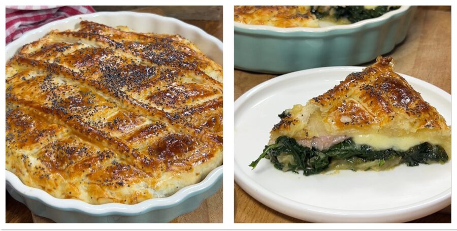 Para una versión vegetariana de la tarta de espinacas, omite el jamón y sustitúyelo por más queso en lonchas.