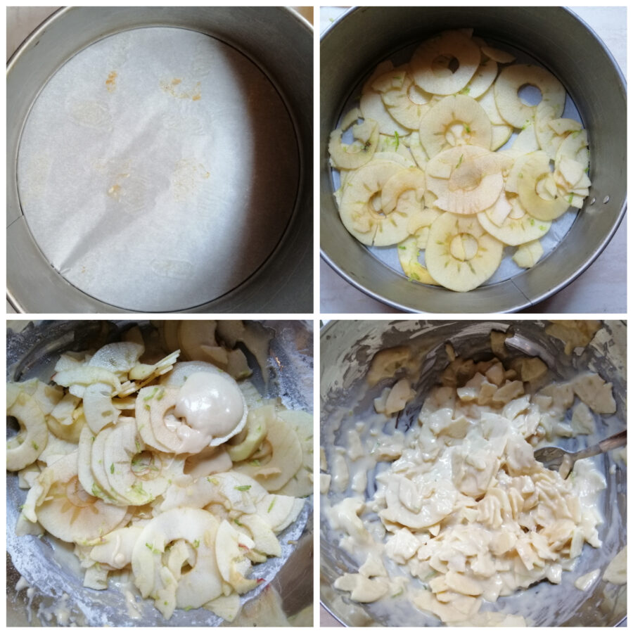 • Lavad las manzanas, peladlas y cortadlas en láminas muy finas con una mandolina, espolvoread con la ralladura de un limón, rociad con el zumo (dos o tres cucharadas), añadid un pellizco de canela y mezclad con delicadeza.