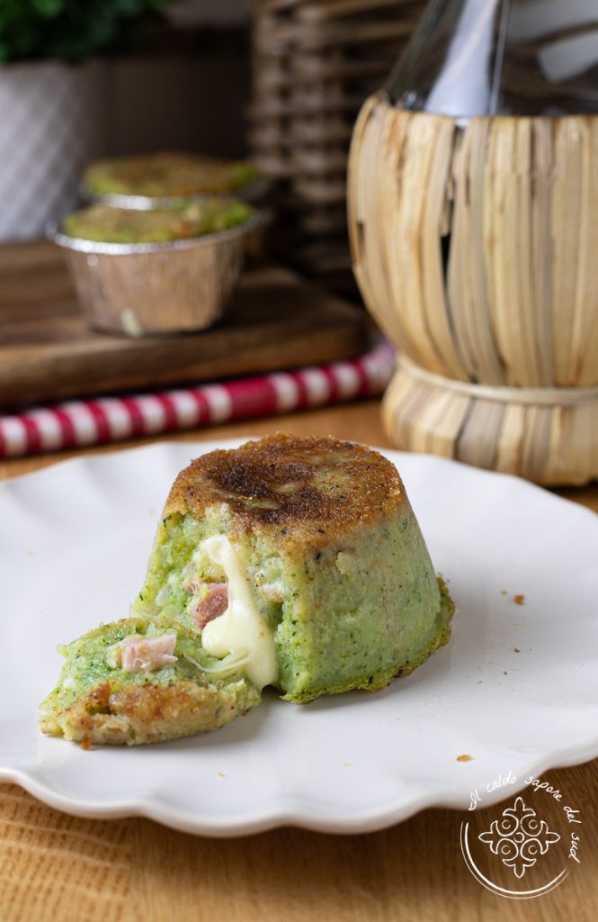 Pequeños flanes de patata y brócoli en raciones individuales, con un corazón fundente de queso y panceta, o si prefieres un nombre más elegante, flan de brócoli y patata. Una receta con patata sabrosa y original y, al mismo tiempo, una receta apetecible con brócoli, perfecta también para los más pequeños.