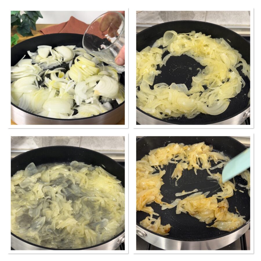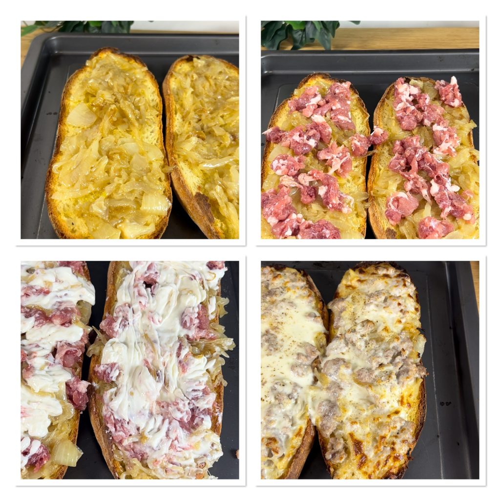 Pasos para hacer las Tostas con cebolla caramelizada, salchicha y stracchino