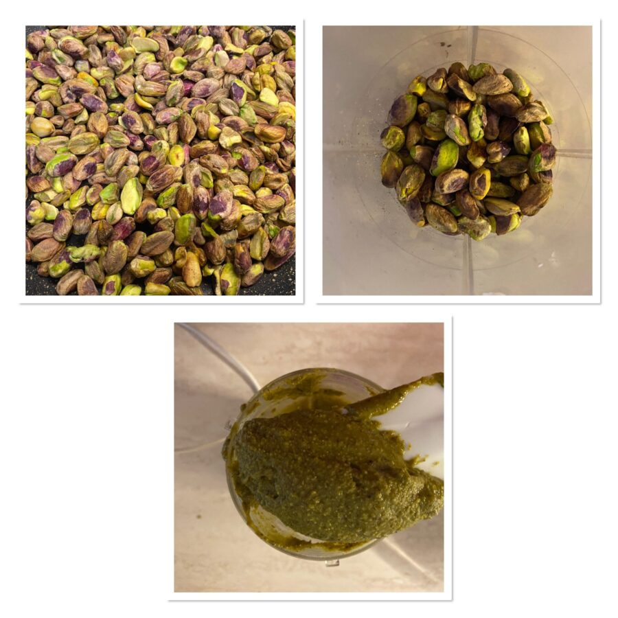 colocad los pistachos en una bandeja y tuestadlos unos minutos en el horno caliente; bastarán 7-8 minutos a 170°C, vigilad mucho que no se quemen.