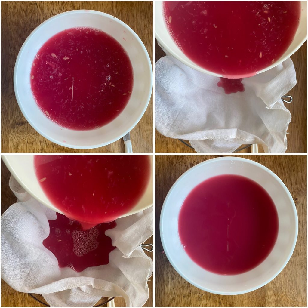 • A pesar de estas precauciones, el zumo de granada aparecerá con impurezas; todo es comestible, por supuesto, pero estropea un poco su sabor. Pasadlo, por tanto, dos o tres veces a través de telas de gasa o de algodón blanco, limpias y enjuagadas abundantemente para que no huelan a detergente.