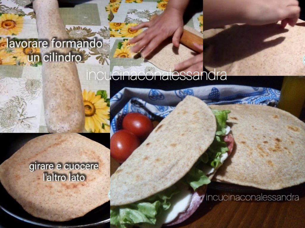 Piadina semi integral sin manteca de cerdo, hecha en casa es aún más buena. Es una receta fácil y rápida, perfecta para cuando vuelves y no sabes qué hacer… no necesita levadura… solo 20 minutos de reposo… la rellenas como quieras, está buena con todo. Yo he optado por salami, mozzarella y ensalada… ¿y vosotros cómo la preferís?