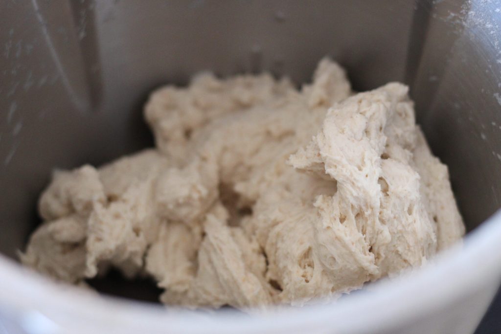 La masa ahora está lista. Espolvorea harina en una superficie de trabajo y trabaja la masa un par de minutos, para que se vuelva lisa y homogénea. La masa debe estar bien suave.