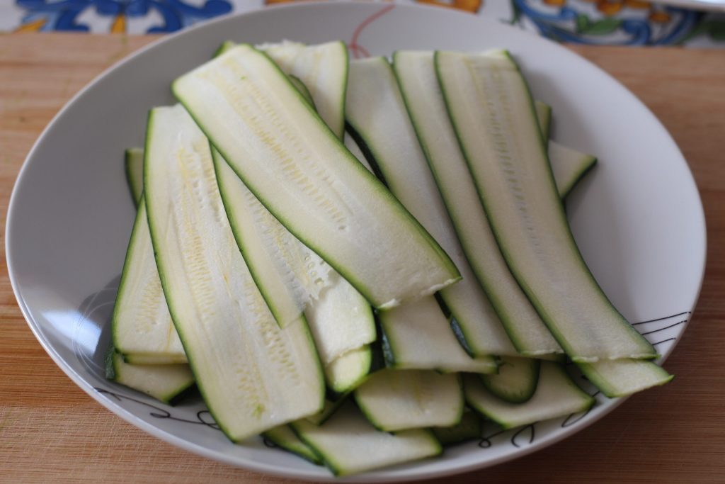 Pasos para preparar la parmigiana de calabacines con speck y mozzarella