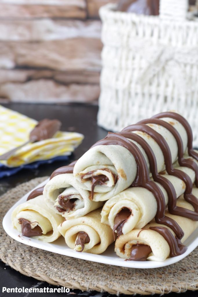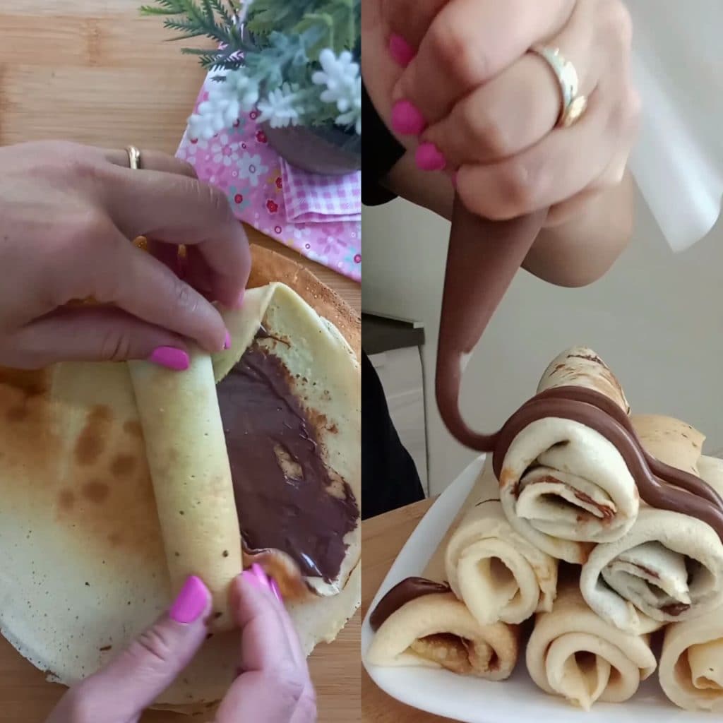 Untad la Nutella en las crepes, doblar los dos bordes laterales y enrollar para formar canutillos.