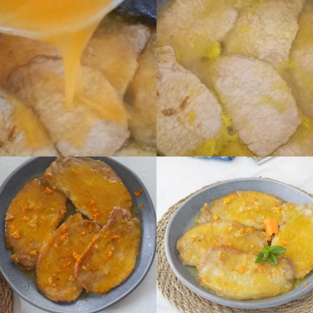 Vierte el jugo de naranja sobre la carne y deja evaporar durante 5 minutos a fuego bajo.