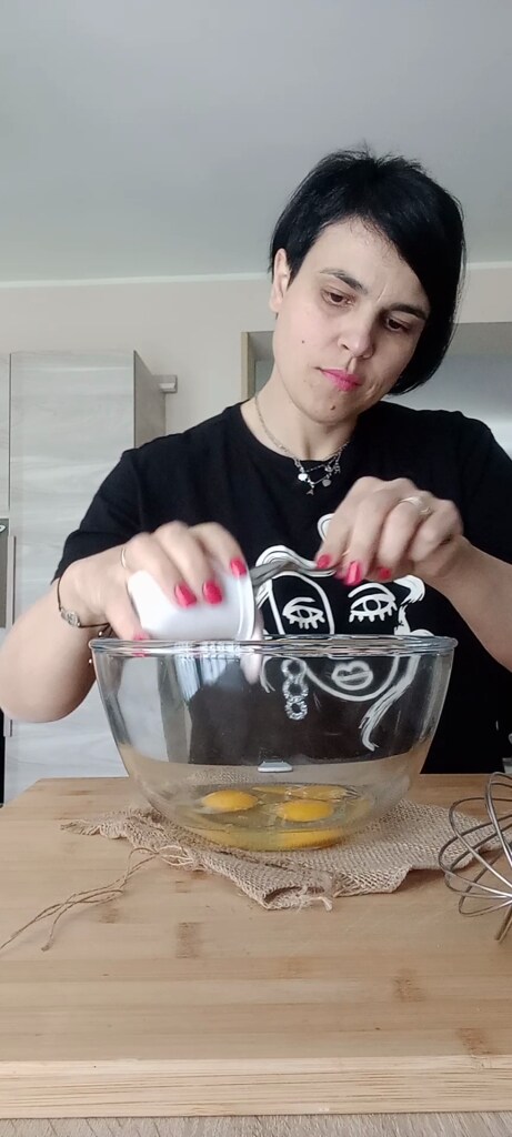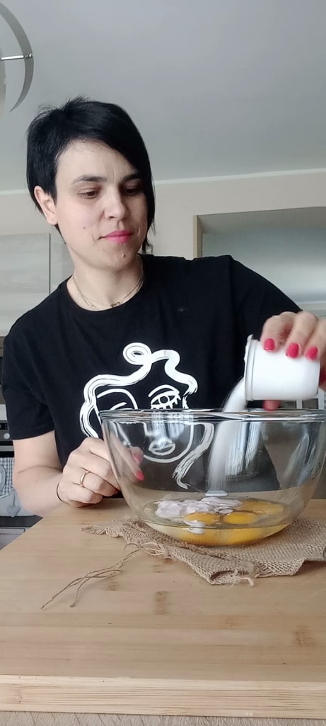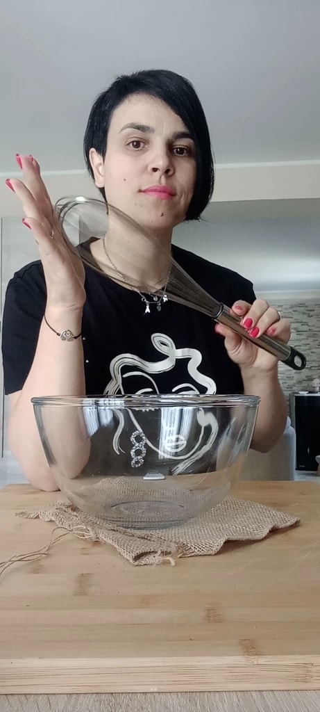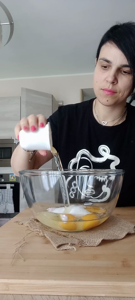 Como veréis en el vídeo, he hecho esta tarta teniendo en brazos a mi pequeño Goffredo. Estaba muy atento y me miraba maravillado, con alguna «manita» puesta aquí y otra allá, digamos que también él contribuyó a la realización… Por último, os confieso que estoy realmente satisfecha: he hecho un dulce rápido al alcance de todos.