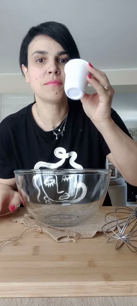 La receta es facilísima y rápida, solo necesitas tres cosas para hacerla: bol, batidor y yogur para medir todos los ingredientes.
