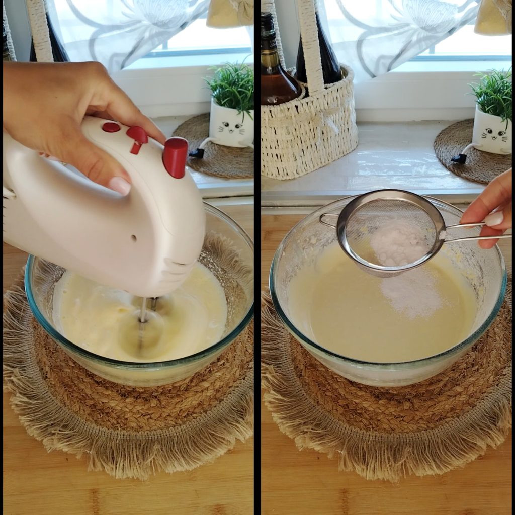 Añadimos finalmente la levadura en polvo tamizada, para favorecer una levadura uniforme durante la cocción. Trabajamos durante algunos segundos asegurándonos de que la levadura esté bien distribuida en toda la masa.