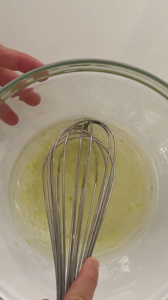 En otro bol, añadir los líquidos, es decir, el agua templada, el aceite y rallar la piel de un limón ecológico