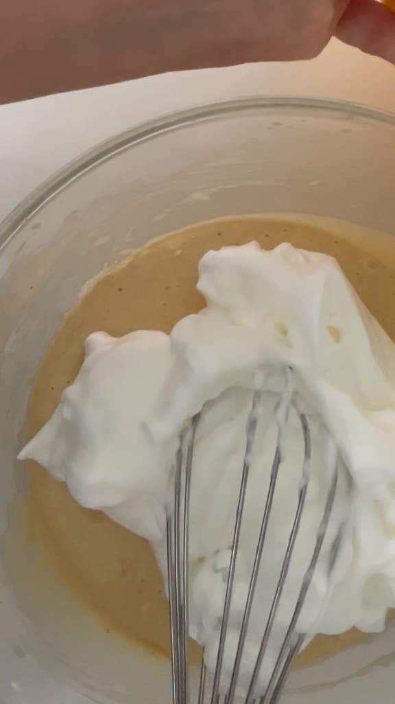 Añadir las claras a mano con movimientos lentos de abajo hacia arriba
